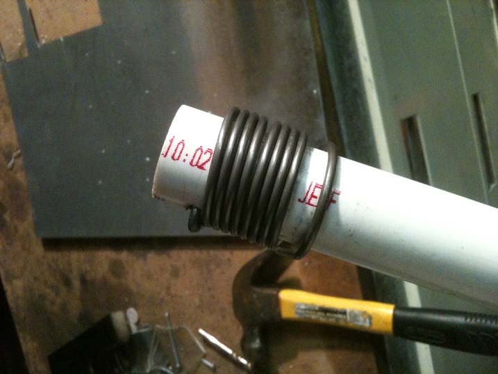 Take the PVC pipe used to make the rings from earlier and mount it to your workbench. Put the stock where the bend should be under the pipe and pull up, keeping a lot of force at the base.