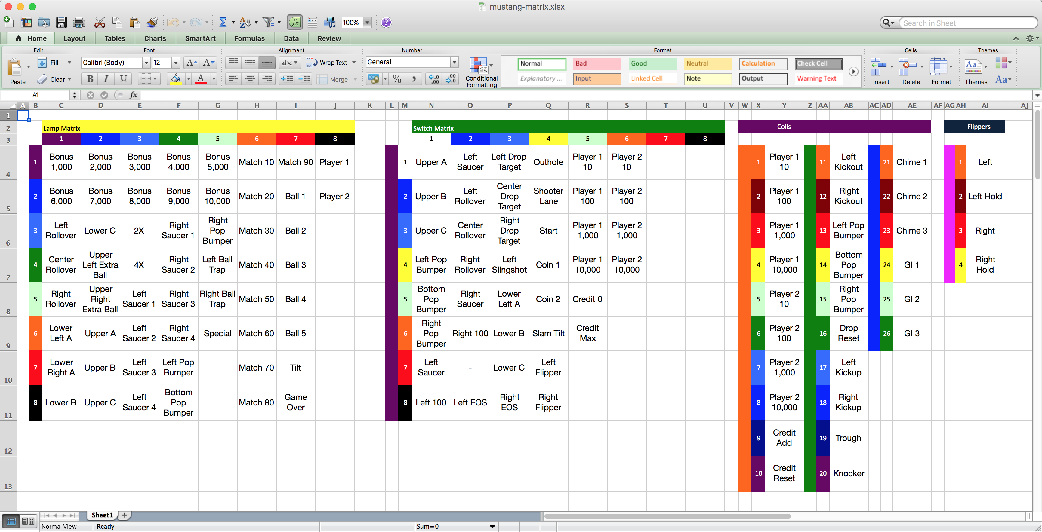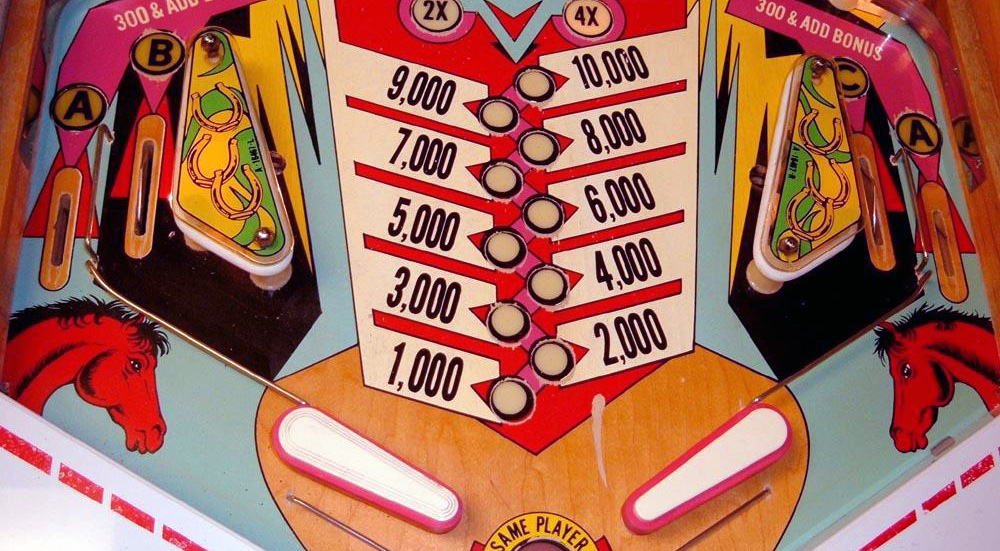 For example, here is a 1977 Gottlieb Mustang EM game illustrating the standard layout that has remained mostly unchanged in the last 30 years: