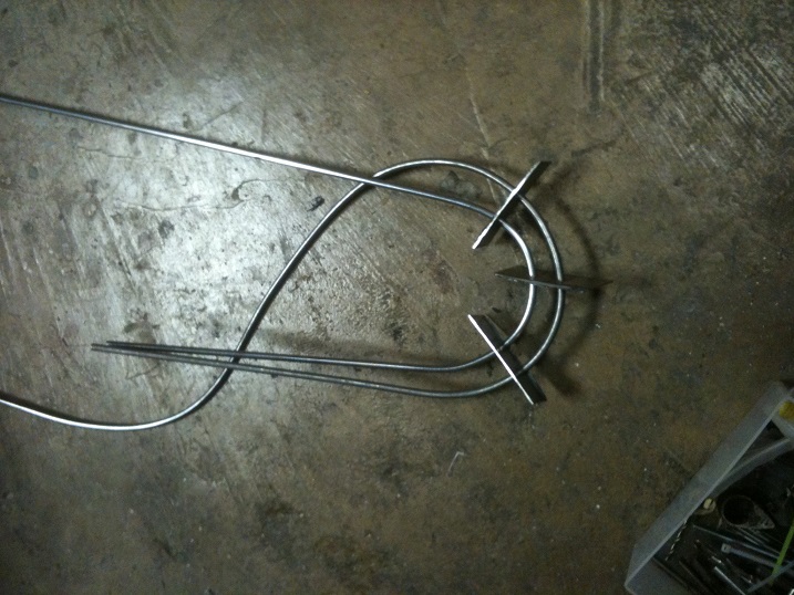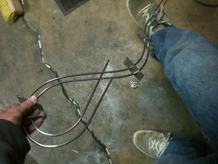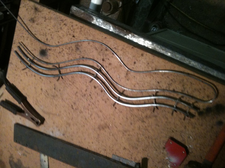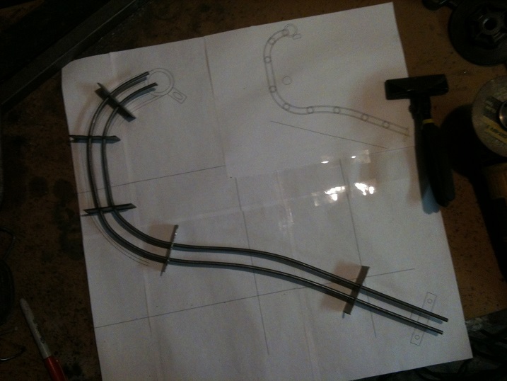 Take the bent stock and lay it across the rail. Mark where it should get the first welds.