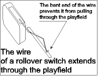 The majority of switches in a game will consist of ones mounted under the playfield with a wire sticking up above that the ball will roll over to activate. Older games used leaf switches but modern one will use microswitches. These can be wired directly into your switch inputs and are normally open in that they make an electrical connection when the switch is activated.
