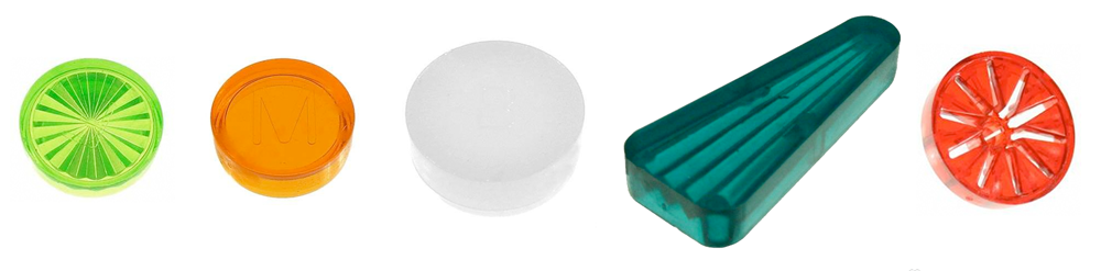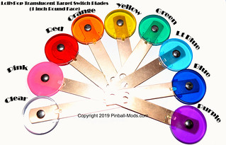 Real pinball inserts are available in various sizes and colors from a number of suppliers including Pinball Resource and Marco Specialities.