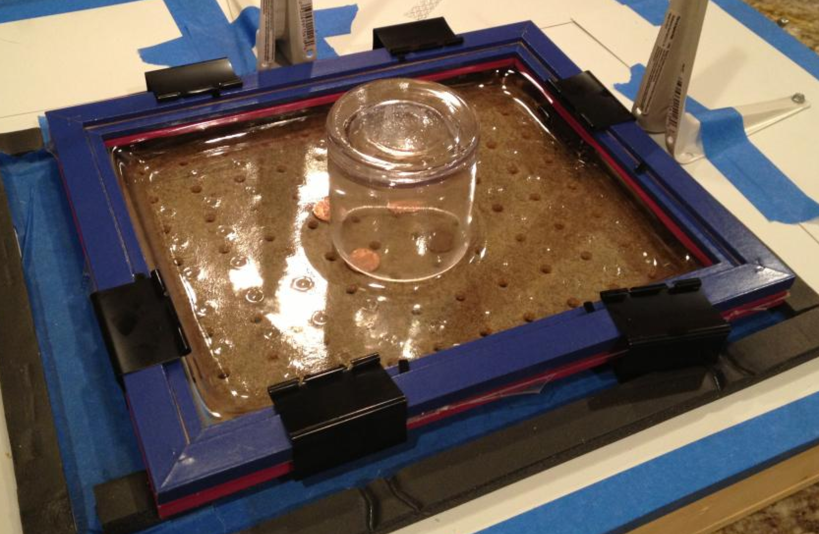 In this photo, the extra airholes are blocked by poster board to maintain the airtight seal.