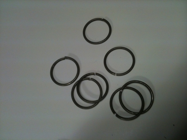 Spacers help to keep the proper distance between two rails in a wireform while it is being constructed. They can also be used for welding braces. A fair number of these will be needed - two or three per curve - plus a few oversized ones to allow for the grounding clamp from the welder if you're using one.