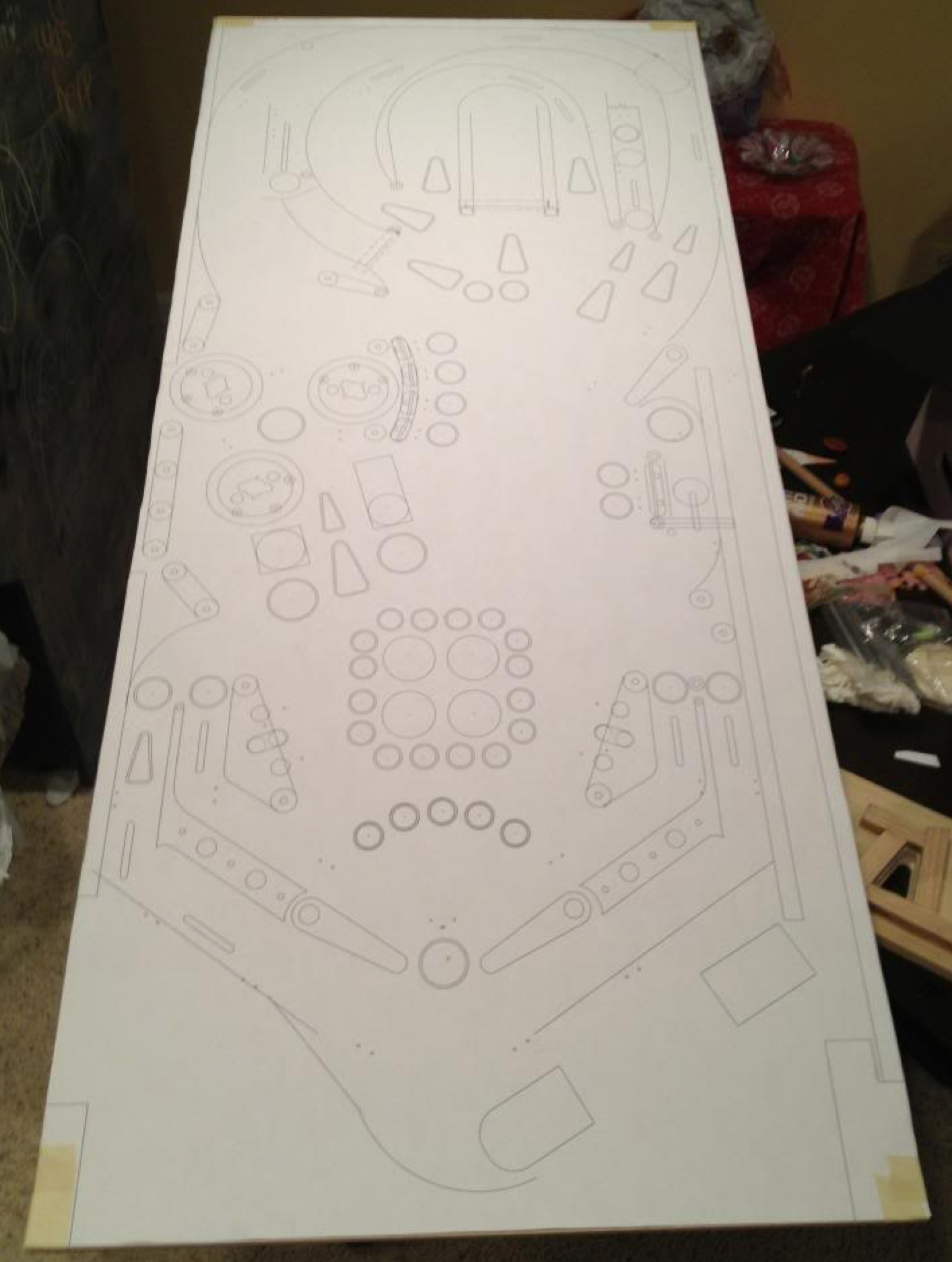 A large-format CNC machine can take drawings from AutoCAD or Inkscape to cut a playfield exactly to the design, which will be much more accurate than one done by hand with a router.